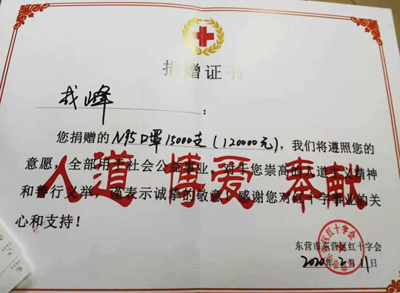 公司股東劉凱身在老家、心系疫情,面對當(dāng)前的新冠肺炎疫情,以自己的初心和使命,踐行社會責(zé)任,積極做好疫情防控工作的同時,發(fā)揚(yáng)“一方有難、八方支援”的高尚情操,特別向東營市東營區(qū)紅十字會捐贈15500支N95口罩(124000元)。