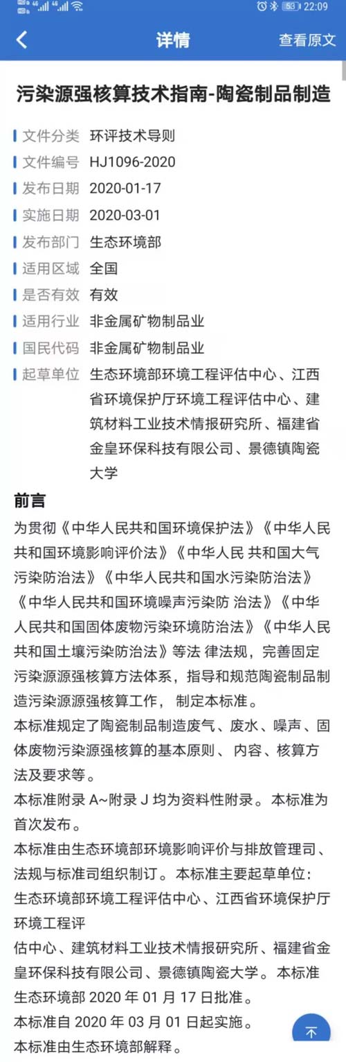 關于發布《污染源源強核算技術指南 陶瓷制品制造》等兩項國家環境保護標準的公告