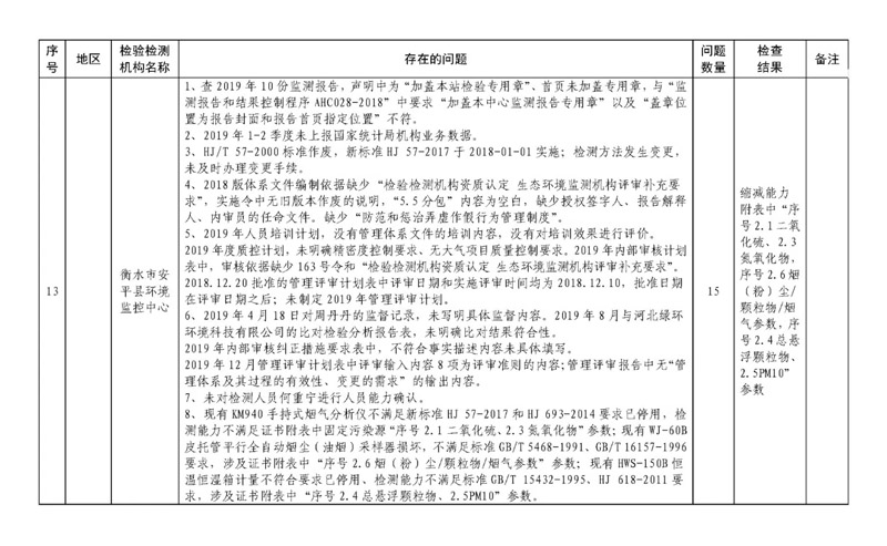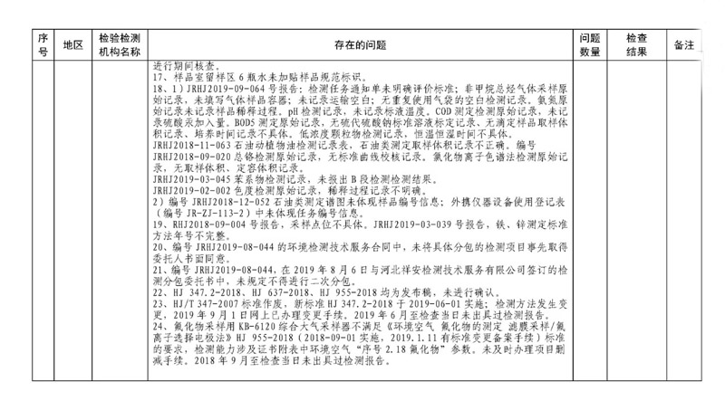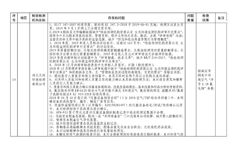經檢查,24家機構資質條件不滿足資質認定能力要求,71家機構存在違規行為,13家機構現場部分能力不能持續滿足資質認定要求,1家機構未主動參加京津冀能力驗證項目考核,5家機構現場能力考核不合格。