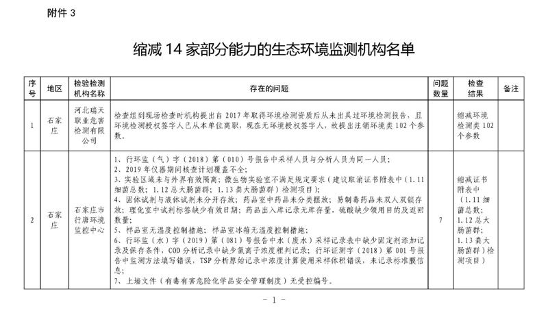 3.縮減14家部分能力的生態環境監測機構名單