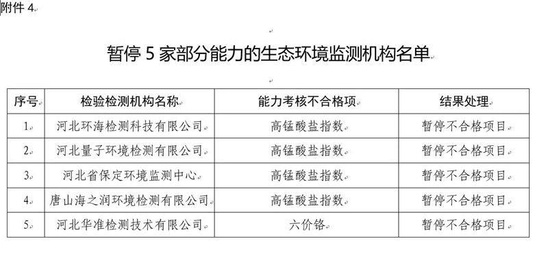 4.暫停5家部分能力的生態環境監測機構名單